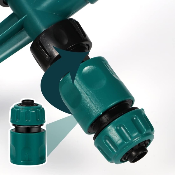 Dzięki dwóm dyszom do węża ogrodowego ROTOSPRITZ możesz bez wysiłku połączyć wiele zraszaczy, aby pokryć większe powierzchnie. Po prostu połącz ze sobą dwa lub więcej urządzeń ROTOSPRITZ, aby uzyskać dwustronne nawadnianie, zapewniając całemu ogrodowwi idealną ilość wody. To płynne połączenie sprawia, że jest idealny do rozległych trawników i rozłożystych rabat.