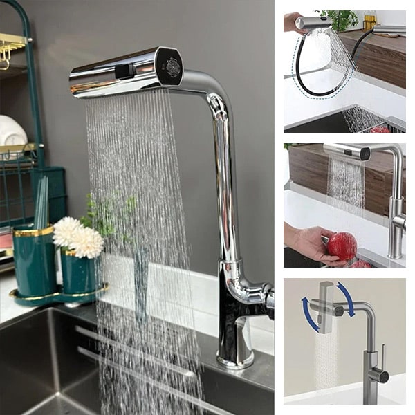 Nasza wielofunkcyjna bateria kuchenna jest wyposażona w obracający się o 360° wylot wody pod wysokim ciśnieniem, który nie tylko eliminuje rozpryskiwanie, ale także poprawia przepływ wody, dzięki czemu mycie i płukanie jest bardziej wydajne i łatwiejsze.