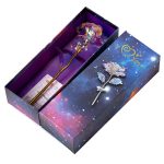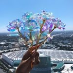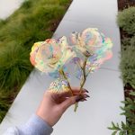 Każda róża jest wykonana z opalizującą, holograficzną powłoką, która pięknie mieni się w świetle, tworząc galaktyczny blask, który jest po prostu hipnotyzujący.