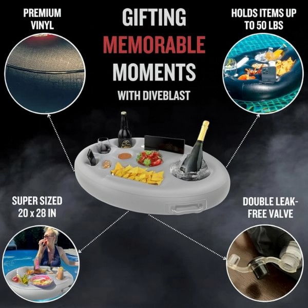 Spraw, aby każda chwila była bardziej zabawna i niezapomniana dzięki temu pływającemu tacku, niezbędnemu towarzyszowi przy basenie do jedzenia i picia.