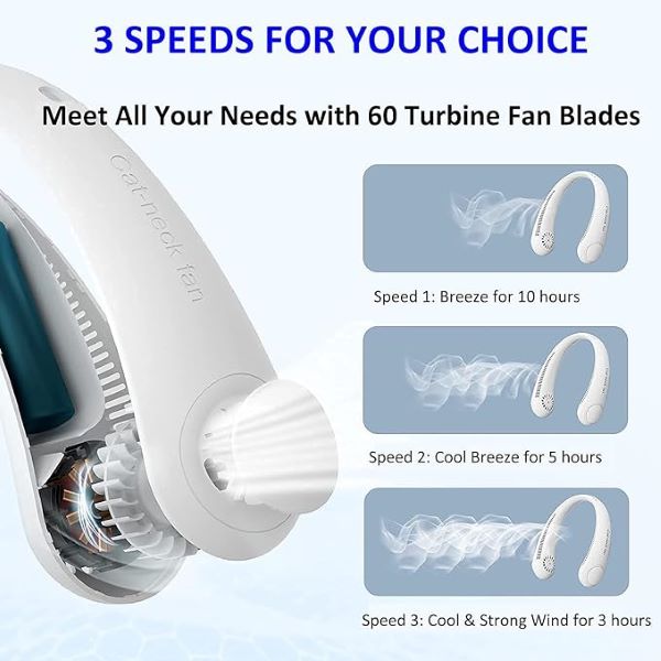 Wykonany z materiału ABS i miękkiego silikonu, ten wentylator na szyję ma elastyczną konstrukcję z możliwością obrotu o 360 °,