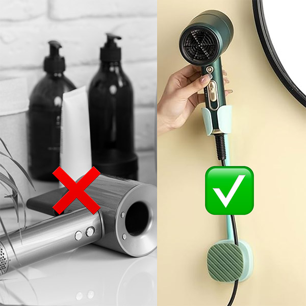 Utrzymuj łazienkę wolną od bałaganu dzięki temu montowanemu na ścianie, oszczędzającemu miejsce rozwiązaniu. Po prostu przyklej go do dowolnej powierzchni w łazience i zacznij stylizować – instalacja bez uszkodzeń w kilka sekund! Dodatkowo, pasuje do 99% suszarek do włosów dla pełnej wygody!