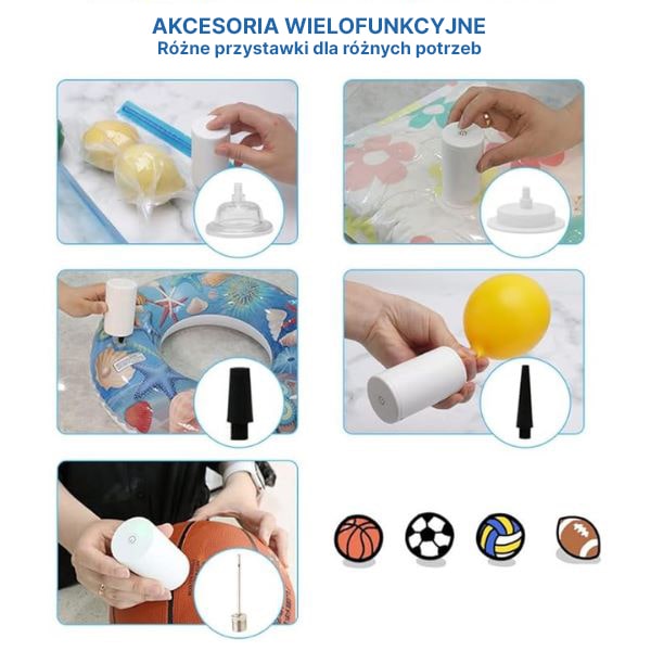 🎈 Działa jako pompka powietrza – Napompuje również worki do przechowywania, balony i inne.