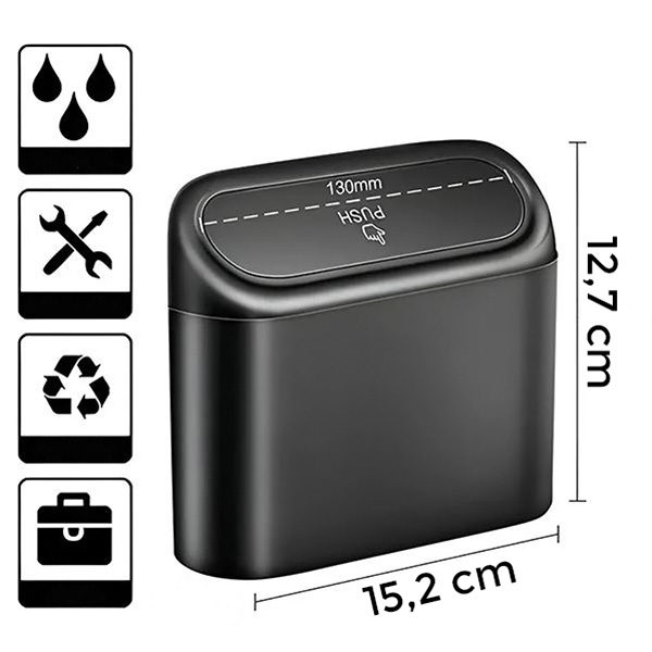 Dzięki temu kompaktowemu koszowi na śmieci Twój pojazd będzie czysty i uporządkowany, nie zajmując przy tym zbyt dużo miejsca. Jego konstrukcja zapewnia wystarczającą pojemność na codzienne odpady, dzięki czemu jest praktyczna i dyskretna.
